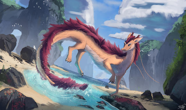 Commission work for Bottlenose . I like this character design. Eastern + Western dragon. :3Related content
