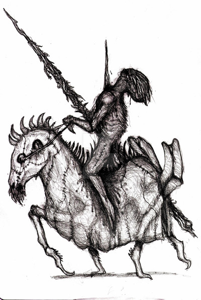 It is terribly feared because they are one of the few knights that hunts untainted, non-magical humans. Canterjack is not an opportunistic predator and instead may select targets up to hundreds of miles away, pursuing them with bloodhound-like accuracy and passing over easier meals. It almost always chooses someone who has done something secret, something terrible, and no one knows exactly how it figures these things out. Just that it knows, and it’s coming: stumbling on legs that seem only half-functional but are far too fast, far too jerky, body twisting like it’s got a broken spine that’s just a little too long.