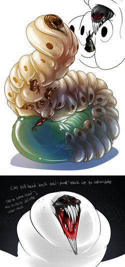 The warping effect of the magic is still partially guided by the afflicted’s will; while ‘normal’ magic is directed by the conscious mind of a professional (whether they’re a wix, witch, or sorcerer), insidious magic infections are largely influenced by the subconsciousness…but a consciousness, nonetheless, belonging to the infected individual. This can DRAMATICALLY alter the final result of any magical change. A person’s ability to speak can be influenced by how much they valued speech in their human life. More rarely, a knight rendered mute by the change who desperately wishes to talk again might find their future mutations oblige them, granting speech anew.