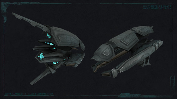 The Split mandibles of the Terrid are a sight to behold, covering the majority of the front of the craft, and able to widen nearly 90 degrees in either direction, it can be used to crush ships that it dwarfs, as well to grievously damage those larger than itself.