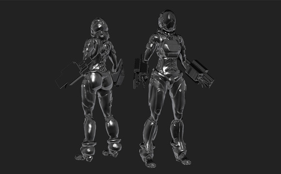I created a girl wearing battle suit!I borrowed only the gun from [ tf3dm.com/3d-model/puo-3940-54… ].