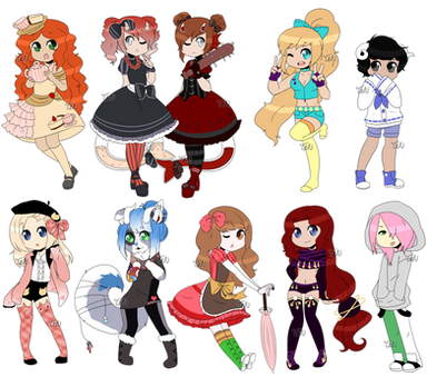 All my water themed TU!!From right to left: Annika, Chantara, Irvetta, Marlow, Junonia (sleeping), Lyka, and Aina.