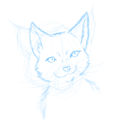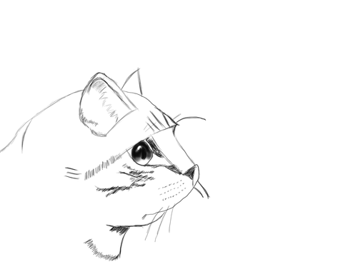 5 - I hid the sketch layer on this step - it's really no longer needed. Most of this was using a basic fur brush for a base, and then go over individual strokes to add more life. Dark bits, like above the eyes look great with a few light strokes showing through