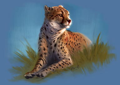 Great job! I love how you made the cheetah pop out using contrast instead of lines, it makes the whole piece look natural and easy on the eyes. Keep it up!