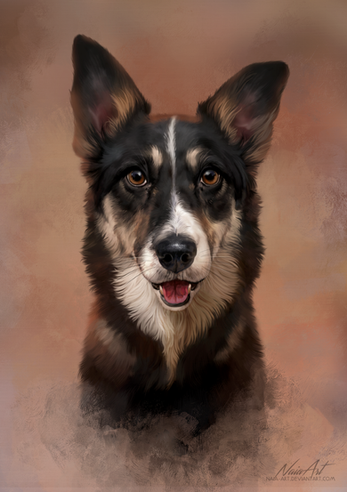 #animalart #black #commission #digitalart #dog #dogart #green #orange #pet #petportrait #portrait #white