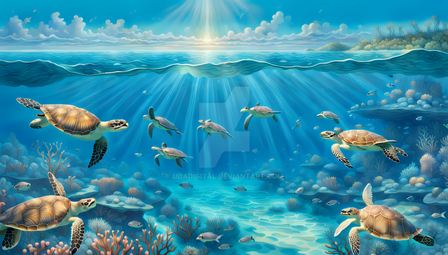 #digitalart #digitalpainting #sea #wildlife #animalart #underwater #coral #fantasy #fantasyart #fantasyillustration #jellyfish #noai #ocean #painted #sealife #seaweed #swimming #turtle