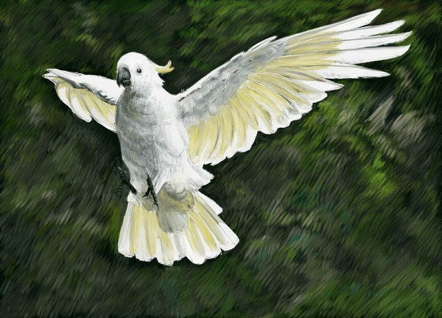 Hahahaha! Love that you made a painting of the craziness that is a Cockatoo in full metal headbang mode! XD