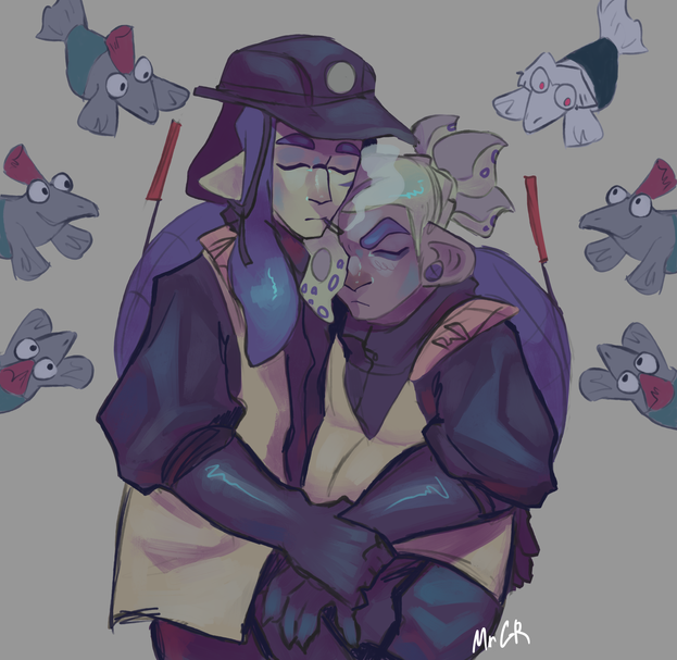 a sketch scene from my au story ver."damn you ika and hiru you killed him you test subject that gone wrong!." he had his hands on his face wanted to cry but couldn't he had no heart.