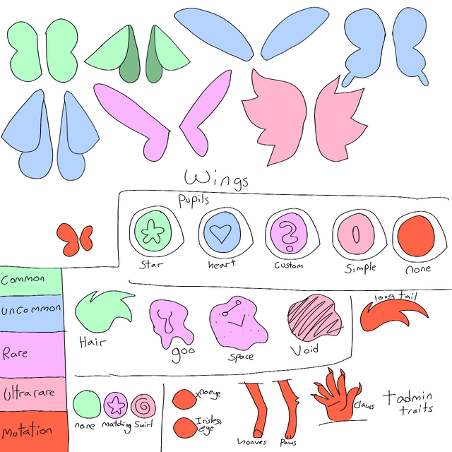 re updated the ref sheet and simplfied it, if an tail/head/gem etc isnt shown here then it is automaticly a epic trait, the feathered head can come in more shapes bigger feathers etc, the hair can be longer shorter etc and still stay the same rarity.How are dream walkers born?