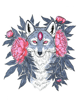 I love how the bust of the wolf fades into leaves and branches! It really shows the reliance of nature in all its parts!