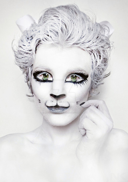 The makeup is well done.Β Is she wearing cat's eyeΒ contacts?