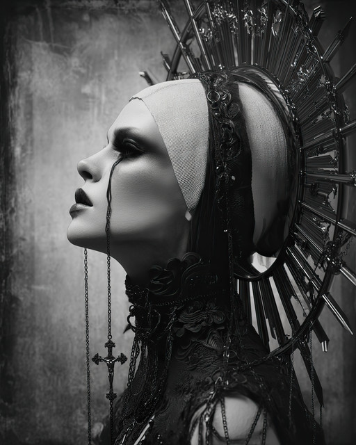 #brunette #creative #dark #darkart #halo #holy #horror #makeup #pale #portrait #rust