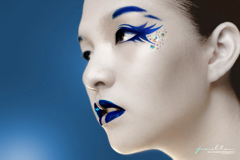 Awesome. Where to start. I love the way her hair frames her face, including the bangs. This sets the stage for the artistry within the frame. The curvature of the cleaning swipe reminded me of the Taeguk from the Korean flag (the yin-yang symbol in the center). Of course, that half of her lips are red also adds to that effect.