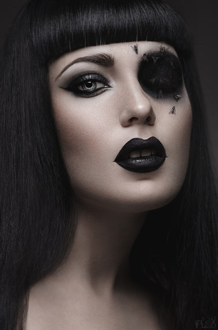 What a combination: pale skin + black eyes + light eybrows + dark lip = a really badass looking woman!