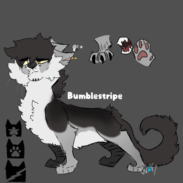 Hi hi !! Been back on my art grind lately. This roleplay is playing a huge part in that! This is my new oc, Bumble. In rp he’s named Bumble’kit but since I’m not sure of his warrior name yet I didn’t write it on his ref. I think he’s so cute!