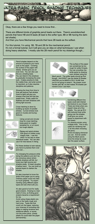 Wow! I actually learned a bit from this. I knew most of it already since I took my first "official" drawing class this year, but I didn't know about the paper's teeth. I've always wondered why I can't get those darker shades on water color paper. I often use dull pencils just because the sharpeners in our art room are so dull and old that they usually break the pencil led and aren't very effective in shaving the wood. Guess you learn something new every day. Thank you so much for posting. <3 I'm sure plenty of others will benefit from this as well.