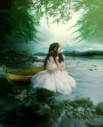 i really love the pink tones here, and the water looks so incredibly beautiful and serene, the woman and the birds are like the finishing touches