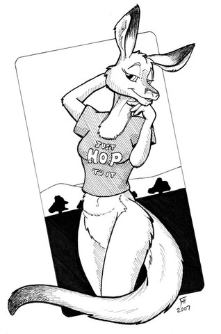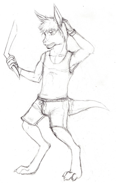 Just a quicky roo to draw up a roo girl but with more humanoid legs. I keep wanting to put big ol' paws on those legs of hers. Ending them in sneakers just seems... like cheating.I think I prefer big roofeet.