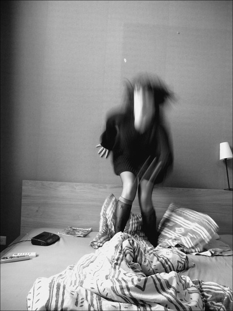 On voit la balancoir toute net devant et les jambes en mouvement deriere, j'aime bien