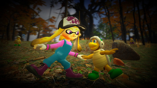 #autumn #girls #inkling #leaves #splatoon #woods #octoling #splatoon2