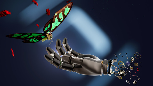 inspired by the movie "Ex Machina".My thought behind this is a robot, that tried to reach the perfaction of nature (the apple) but is not able to reach this goal.