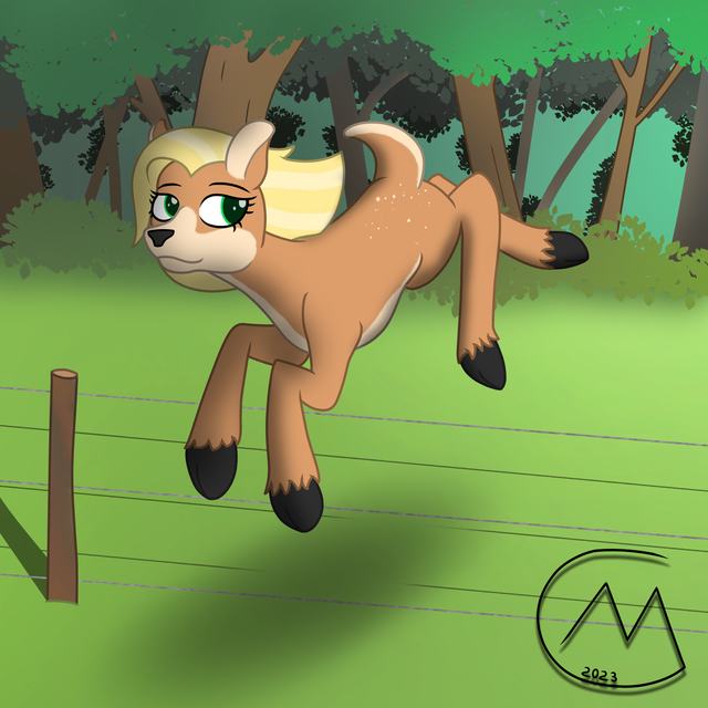 It's been quite a while since I did an art piece just cause I wanted to draw my OCs. This here is one of my deer OC's, currently called Ms Innocence as I still don't have a name for her. This is also the first time I've drawn my new deer style digitally. Also my first real attempt at doing a decent painting type background.So Ms Innocence here is one of my main protagonists for a story I have planned to release this winter. The story will be focused on this deer characters and the story is completely original. This also has no ties at all to the MLP universe, its just purely my world. There will be other animals that show up in this story as well but no horses of any kind will be present.