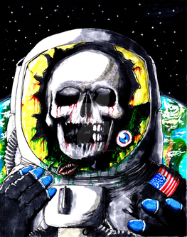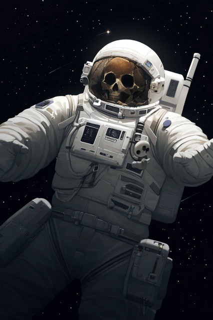 I can only imagine what that guy is thinking, either he's scared out of his mind or wondering where that came from. For some reason it made me think of the old movie "Moon Trap" and old scifi book covers. I like it a lot.