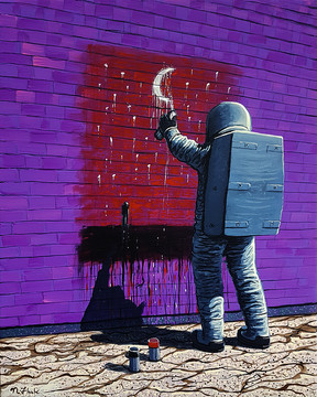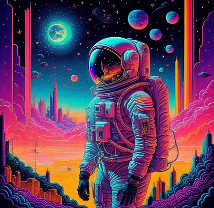 #astronaut #city #cyberpunk #night #purple #retro #space #flooko #fantasyart #fantasycharacter #painting #retrofuturism #traditionalart