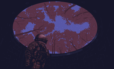 #astronaut #blue #forest #nature #paint #painting #portals #red #retro #scifi #space #spaceman #surrealism #traditionalart #trippy #flooko