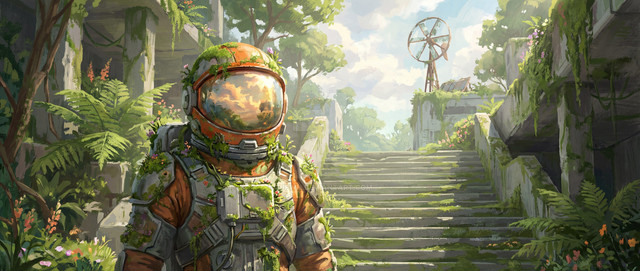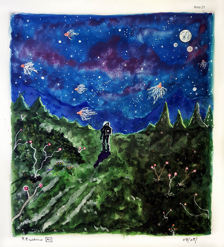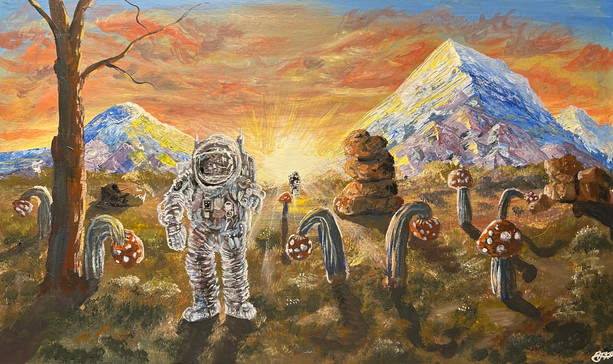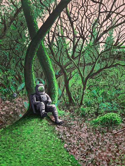 #acrylicpaint #adventure #astronaut #forest #green #nature #painting #space #spaceman #surrealism #trippy