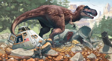 #acrylicpaint #dinosaurs #fantasy #fun #handmade #jurrassic #paint #painting #surrealism #trex #astronuat #flooko