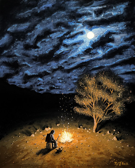 #adventure #astronaut #forest #nature #night #paint #painting #treehouse #vibes #flooko #space #traditionalart #adventuretime