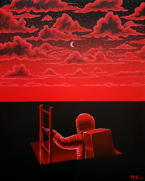 #astronaut #dark #painting #red #space #trippy #flooko