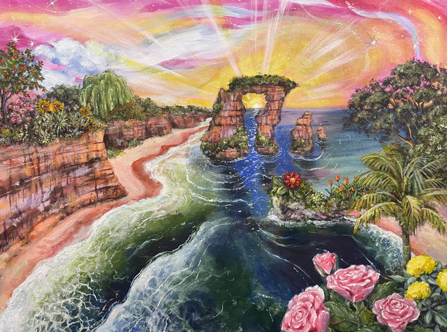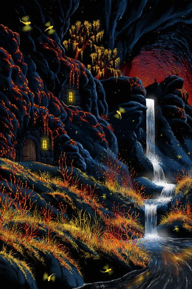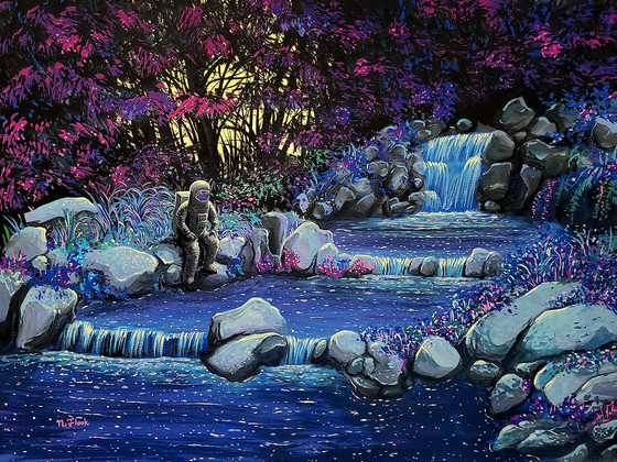 #fantasyart #forest #waterfall #jungle #plants #landscapepainting #acrylic #astronaut #fineart #handmade #painting #scenic #space #traditional #trippy #flooko