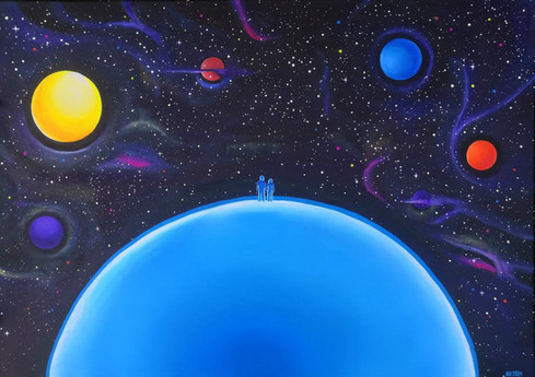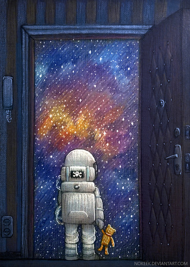 #acrylic #astronaut #blue #dark #light #painting #space #spaceman #surreal #surrealism #trippy #flooko
