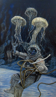 #acrylics #astronaut #dark #painting #skulls #space #spaceman #flooko