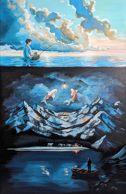 #adventure #astronaut #blue #fantasyart #fishing #painting #spaceman #surrealism #flooko #contemporaryart #traditionalart