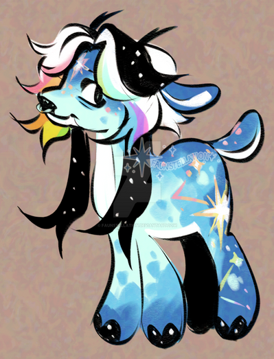 This is so cute! I love his pose and his big nose and head, and you fit his whole body in there nicely. The lineart is clean and the coloring is great, I also love the white outline around it. Thanks so much <3 I'm working on your half right now so it should be done in an hour or two.