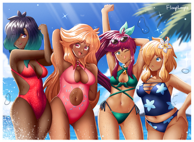 Me drawing my FCs? Only if I get to draw the bestie's characters too-They're on a double date, Scorch can't swim tho