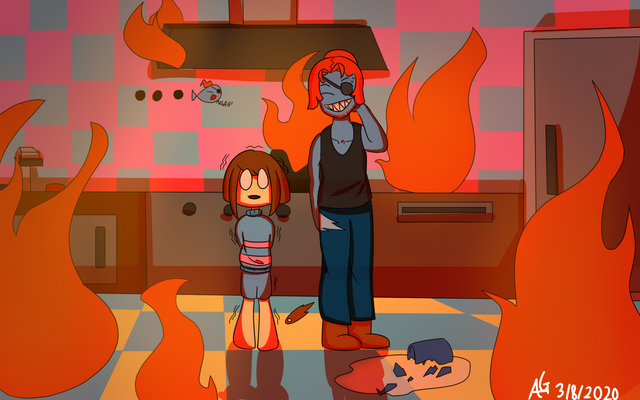 #frisk #spaghetti #undyne #tobyfox #undertale #fire #undyne_the_undying
