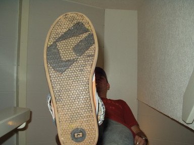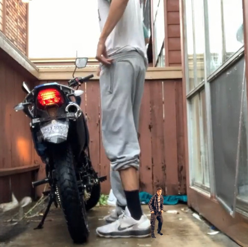El gigante solo se rió y puso su zapatilla deportiva sobre el cuerpo encogido de Tom.