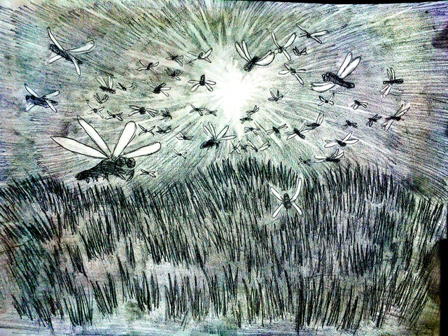 Drawing: Jeffrey Sciberras1O species of insects, 1 species of arachnid and 1 specific species of plant are shown in this drawing.