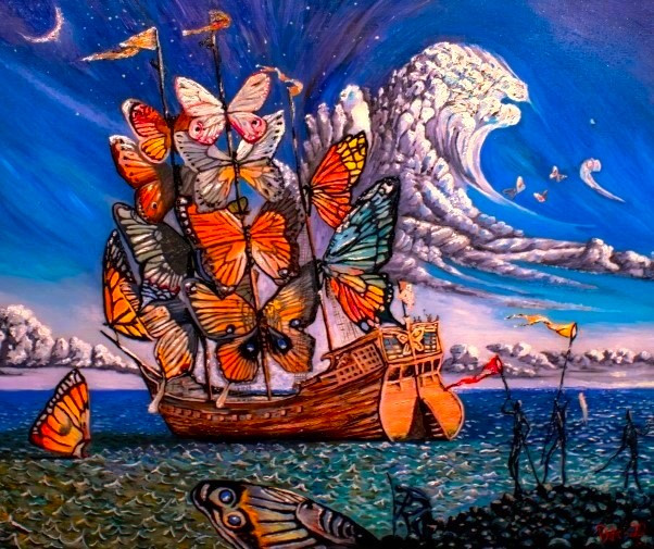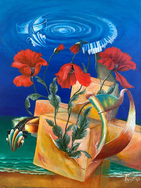 #surreal #boat #excape #fish #flowers #geometry #impossible #music #piano #poppies #violin #water
