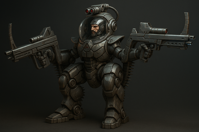 Was die Knarre betrifft...wie wär´s denn zum Beispiel mit nem angedeuteten Tank für den Flammer?