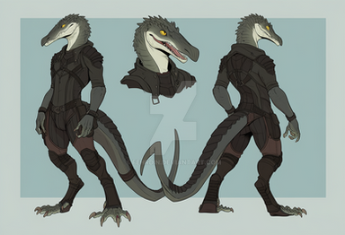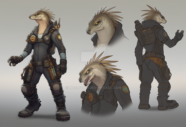 #characterdesign #referencesheet #scalie #reptile #lizard #originalcharacter #dinosaur #gun #militaryuniform #raptordinosaur