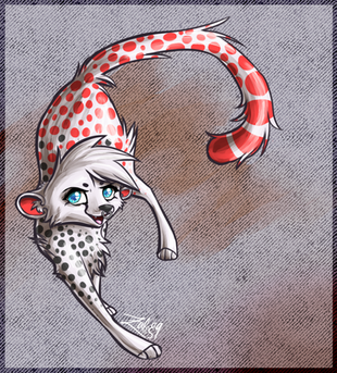 This is amazing oh my god. I love how you've done his body shape ;; like he's all long and elegant, it's amazinggg. <3 I adore his fluffy tail!!