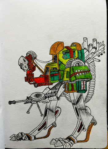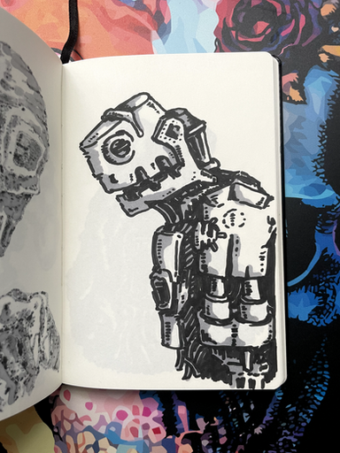 #traditionalart #characterdesign #cyberpunk #robot #copicmarkers #illustration #sketchbook #sketchdrawing #traditionaldrawing #environmentconcept #robotcharacter #dailychallenge #ohuhumarkers #inktober2024day23