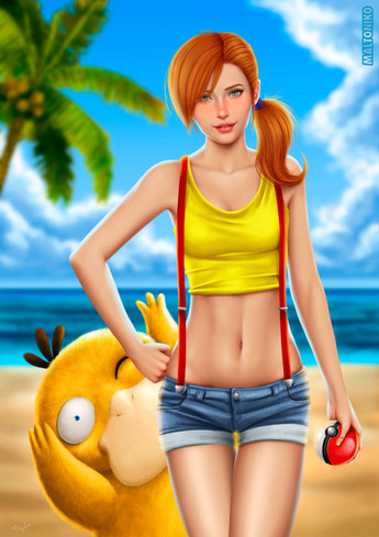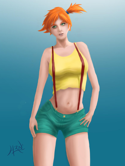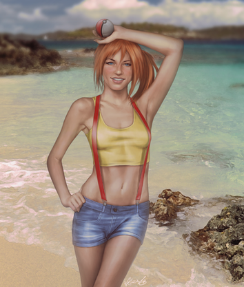 Extremely beautiful body. Excellent clothes & color work. It's a good try with the realistic face, but if you draw anime features instead, it would compliment the body immensely and be easier to accept as being Misty. As is, it looks like a (good) cosplay portrait, especially with the auburn hair. Thank you for sharing here.