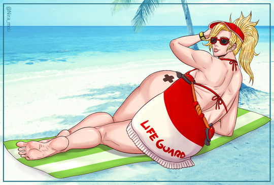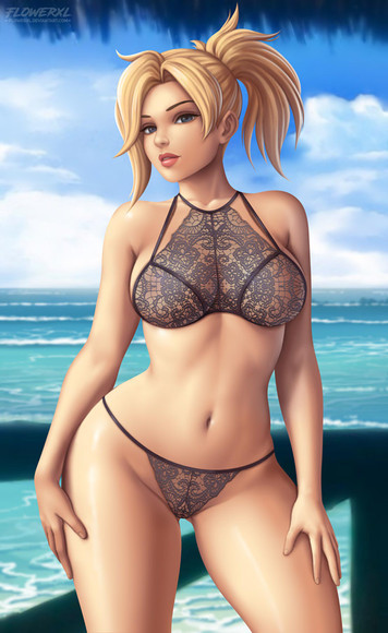 Dat Bikini Goddess Mercy ohhh Mercy Mercy my God Mercy me. *O* Like...wow~ Wow~ Dat magnificent Swiss-German white chocolate booteh and dat bikini, ohhh dat 'kini. My. God. *O* She's gorgeous and she be DUMMY~THICC! Mmmmmmm! (Heart) Pharah's gotta be melting and/or in desperate~need of a~medic right 'bout now~