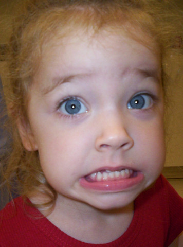 I have to say cute but a little terror too. She has the devil in her eyes. LOL